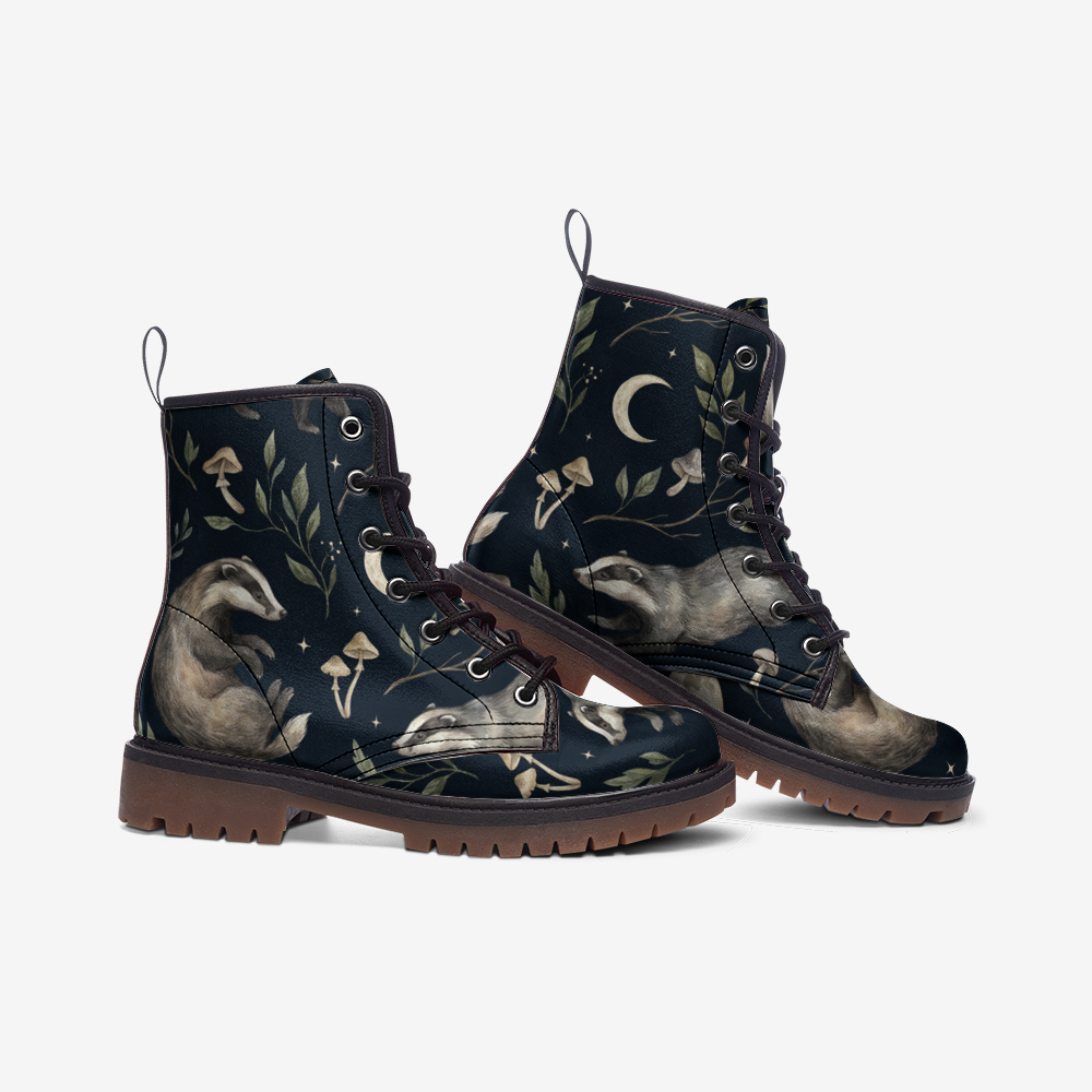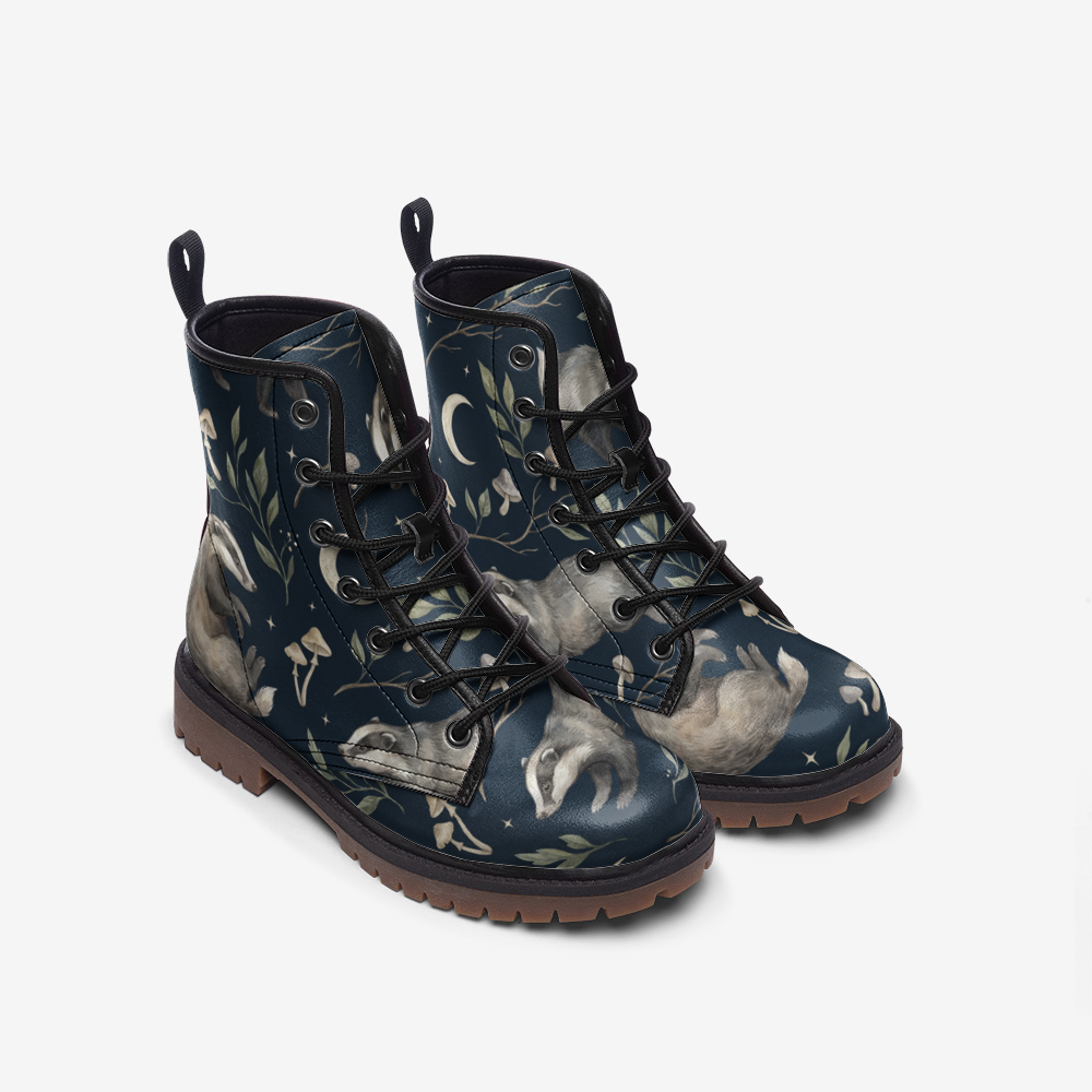 Badgers Of The Night Dark Blue Vegan Leather Combat Boots