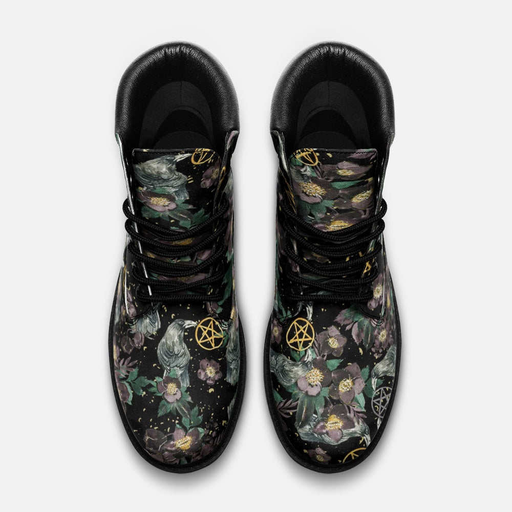 Dark Cottagecore Aesthetics Vegan Leather Low Combat Boots