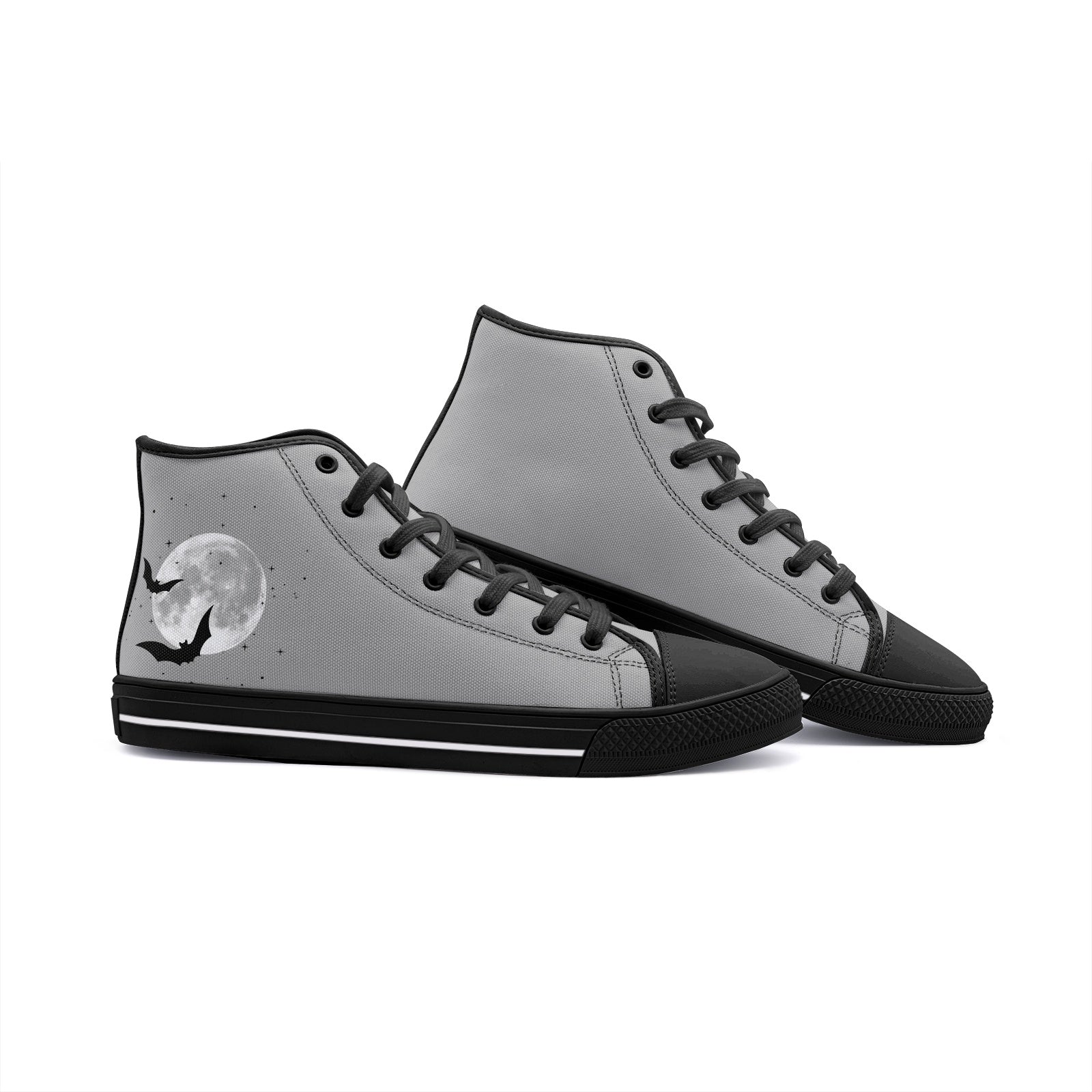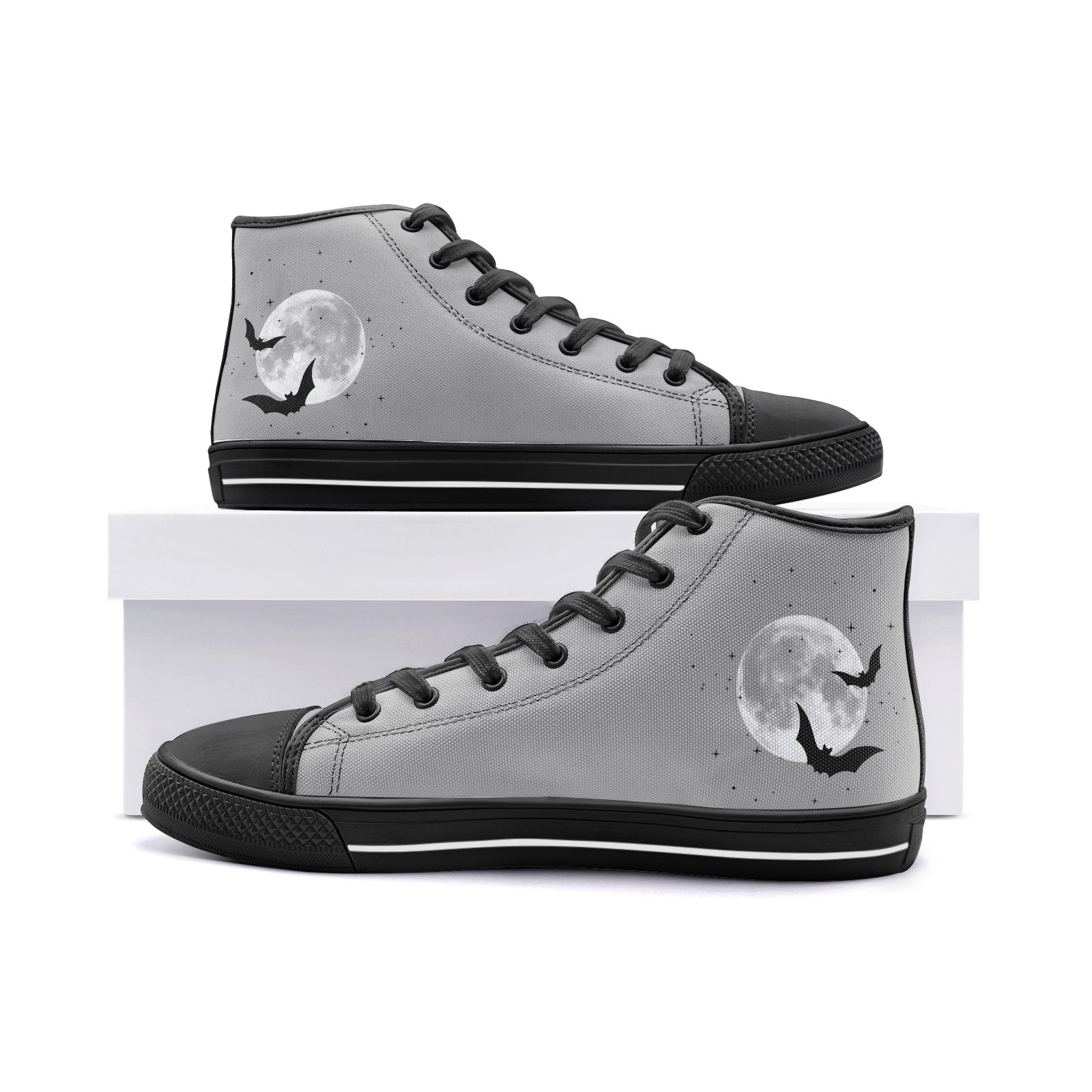 Flying Bats Under The Moonlight on Grey High Top Vegan Canvas Shoes