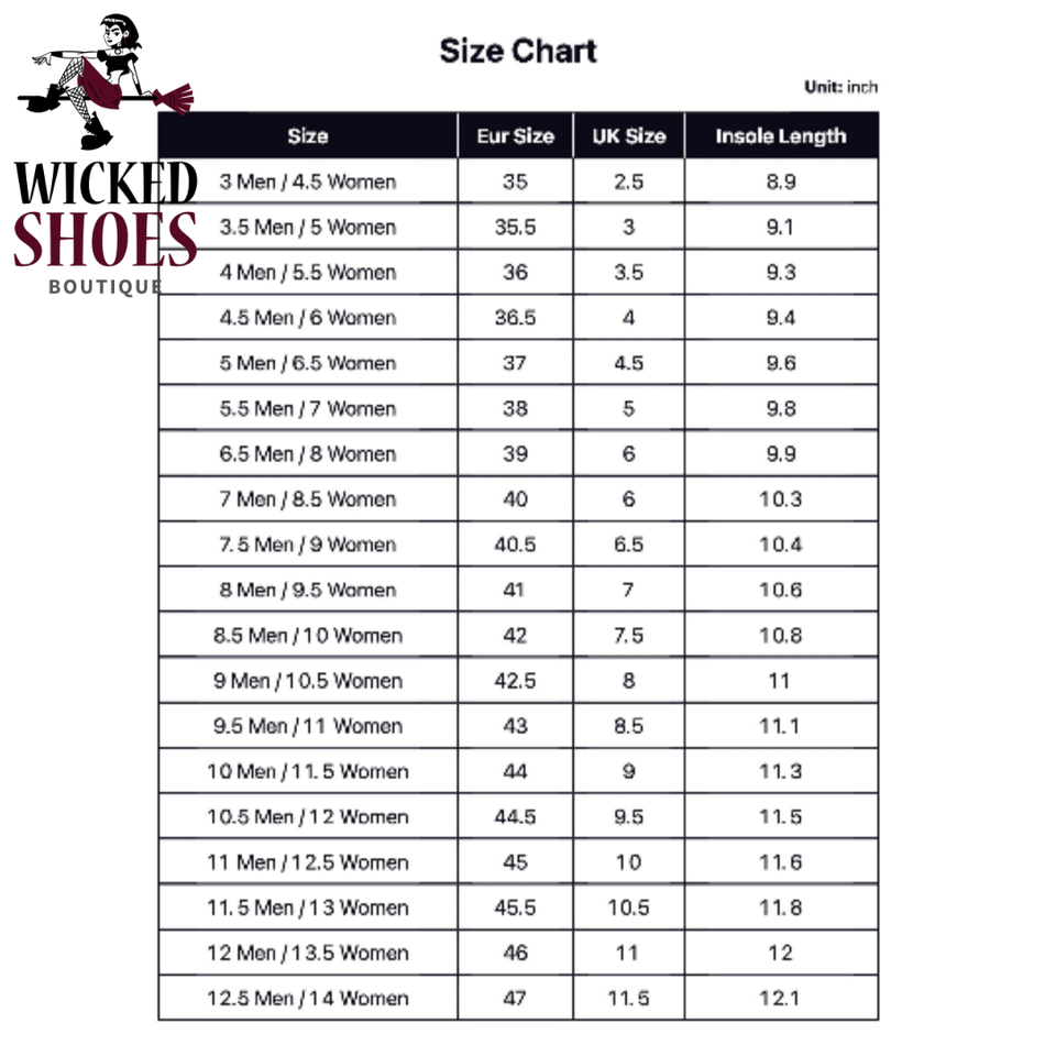 Our shoes are US sizes. Please double check your measurements with the size chart below. If you have wide feet or are between sizes, we advise you to order a size up.