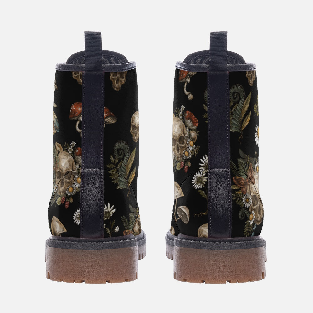 Goth Cottagecore Aesthetic On Black Vegan Leather Combat Boots